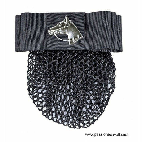 Fermacapelli con retina con testa di cavallo sul fiocco