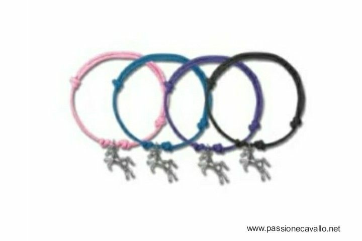 Elegante braccialetto in corda con ciondolo puledro in metallo. Disponibile in rosa, petrolio, lilla o nero. Lunghezza regolabile + 3 anni. colore: rosa,turchese, viola,nero.
