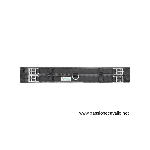 Sottopancia in neoprene traforato da dressage, fibbie inox e anello centrale.