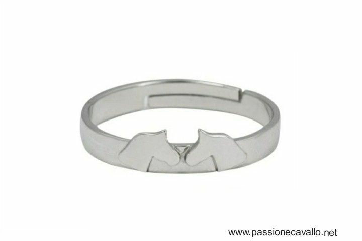 Anello con due teste di cavallo in rilievo, la dimensione è regolabile.