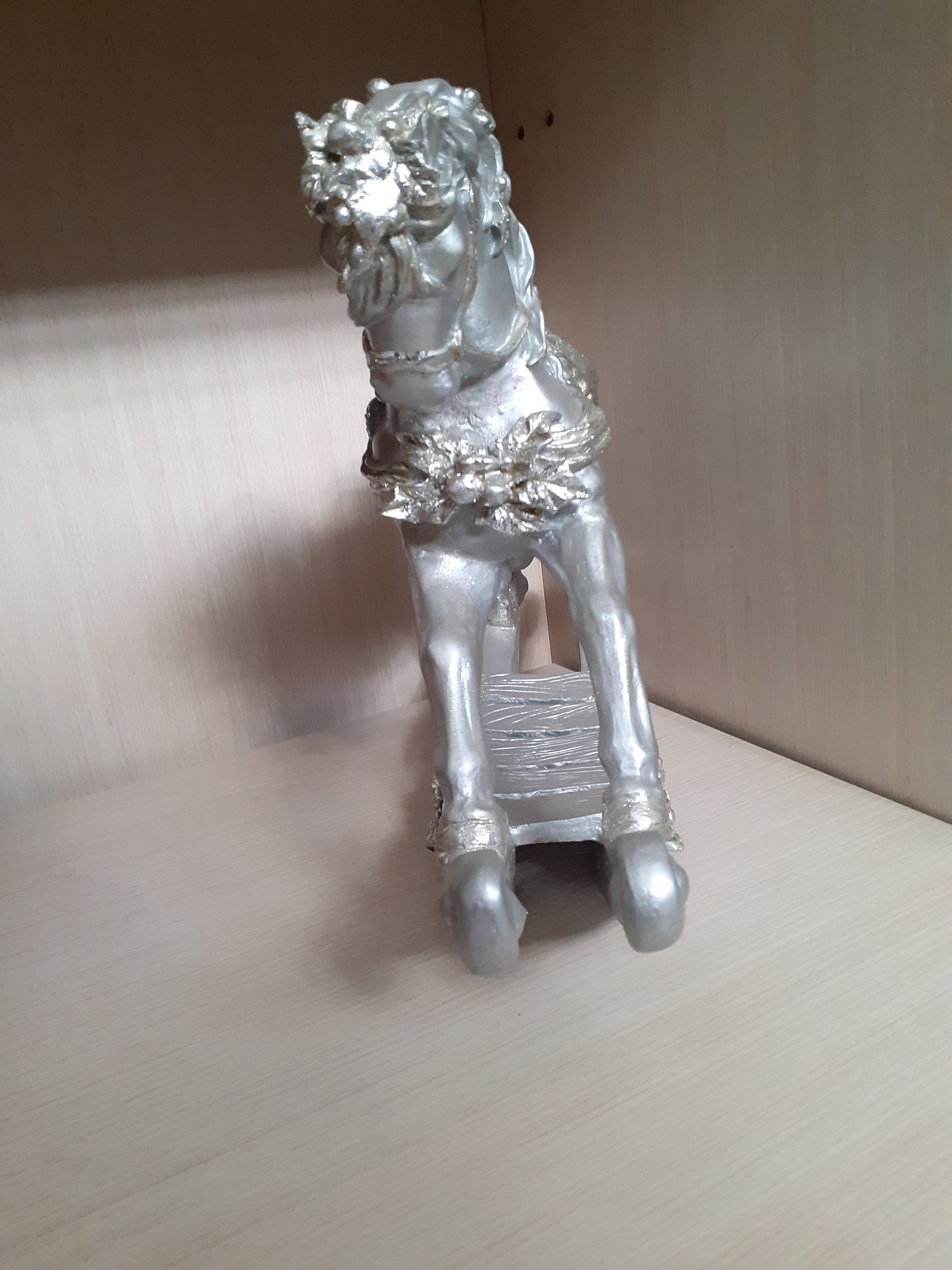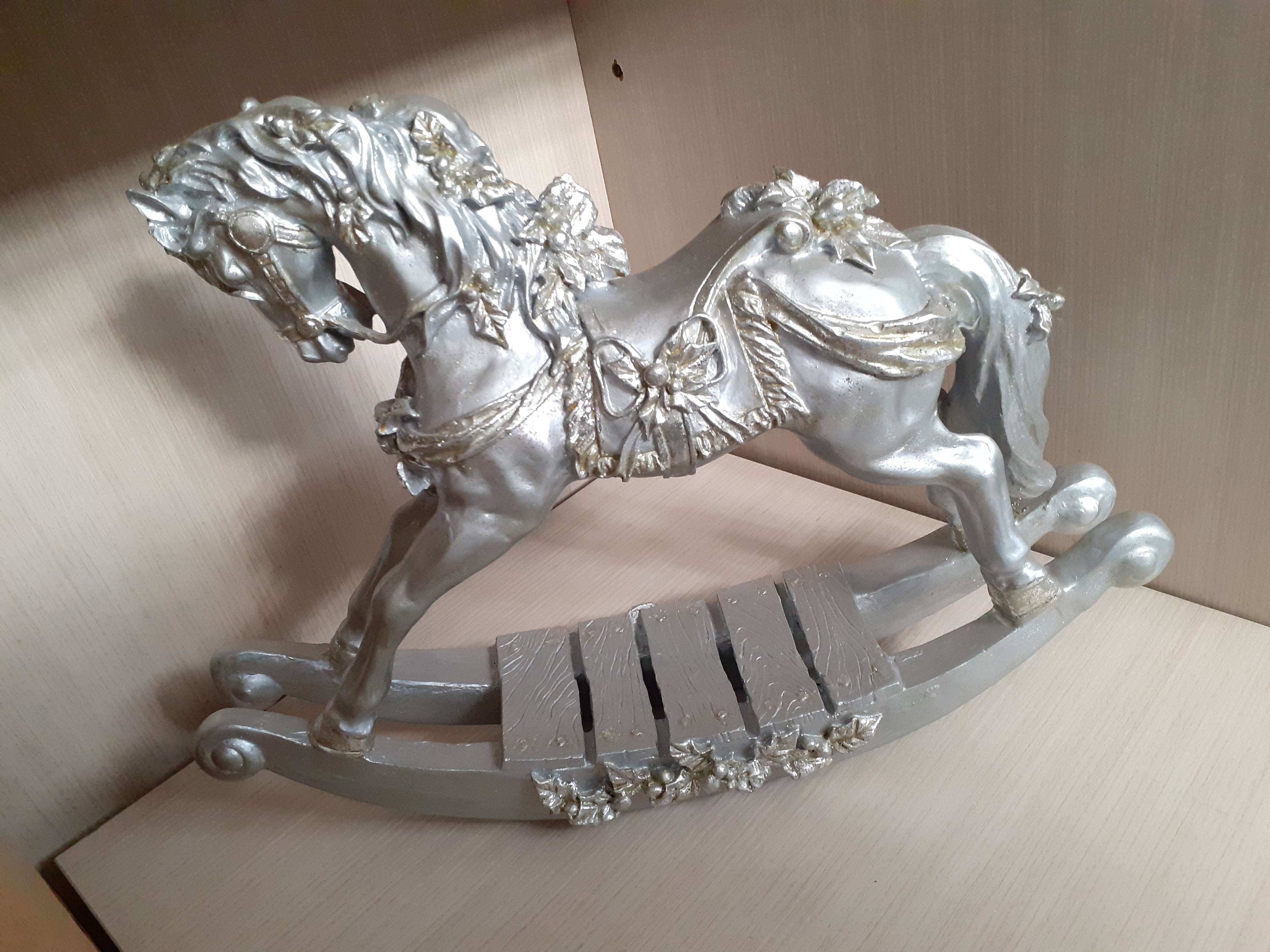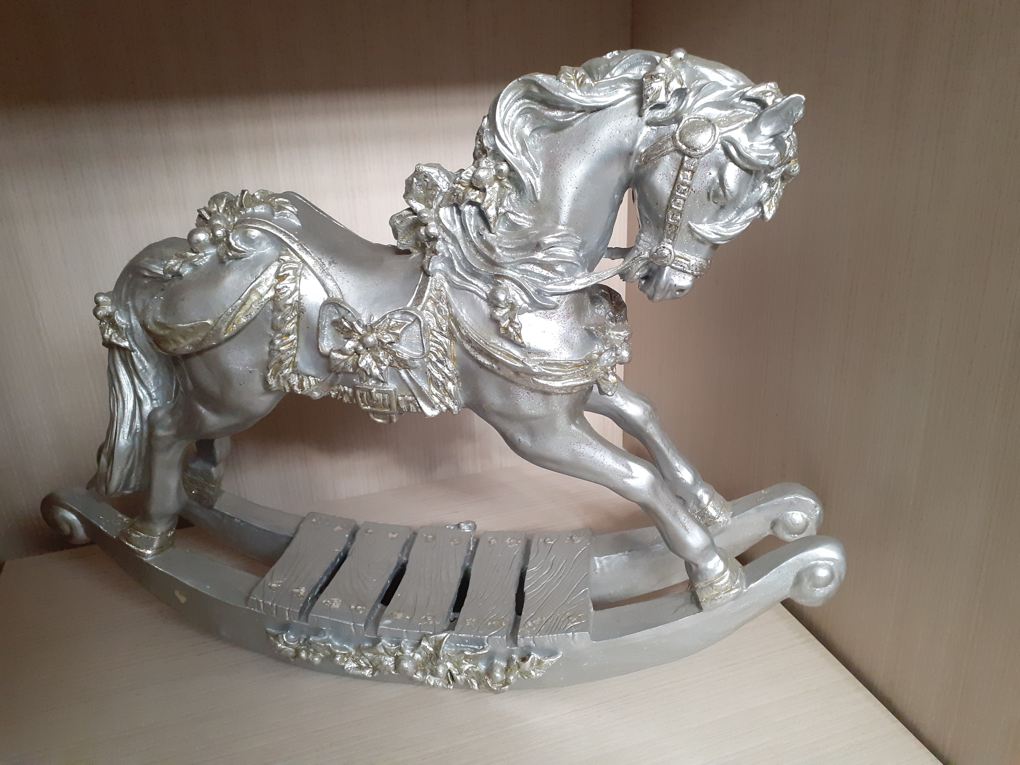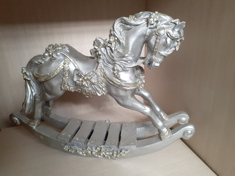 Cavallo a dondolo argentato.