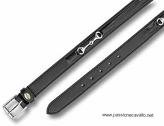 Cintura in cuoio- modello con morso. Disponibile in nero con morsi argento.