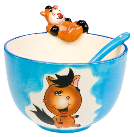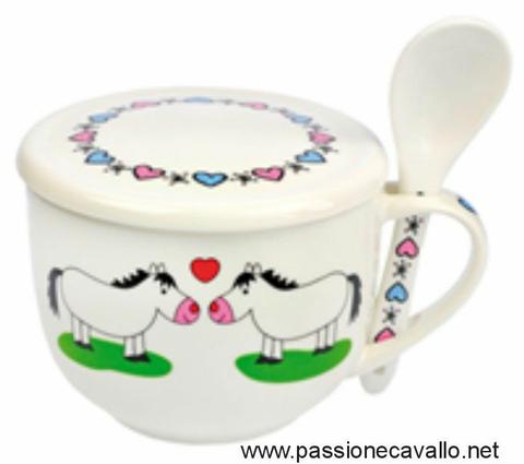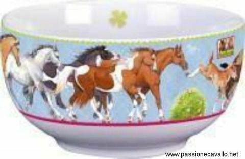 Ciotola con cavalli per müesli , in porcellana, con stampa interna. Altezza : circa 8,5 cm, Ø circa 14,5 cm.