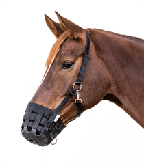 Per evitare il consumo eccessivo di erba o in caso di malattia. Il sovracapo è fissato da un lato con una fascia a strappo per evitare che la museruola penzoli in modo pericoloso. Per una vestibilità perfetta la museruola è regolabile al sovracapo con cinghie in nylon. Concepita per non...