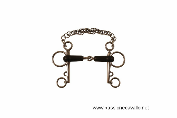 Pelham snodato con rivestimento in gomma. Asta: 7 cm. Materiale: acciaio inox.